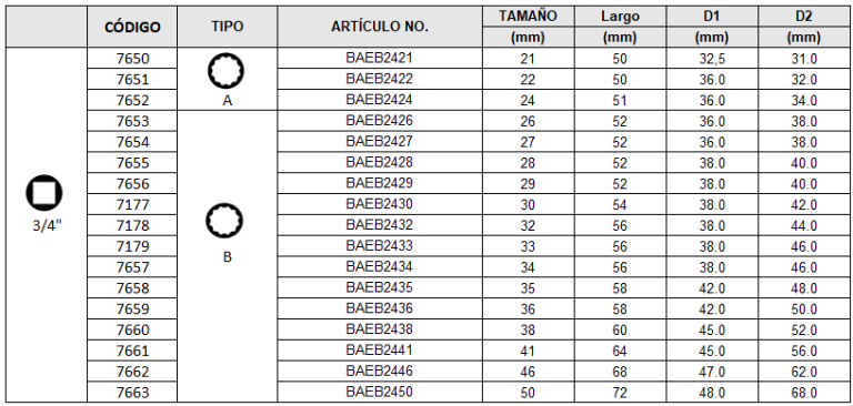 Dado de punta hexagonal largo Toptul Serie BCEA Acabado...