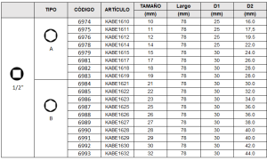 JUEGO DE DADO IMPACTO CORTO HEXAGONAL